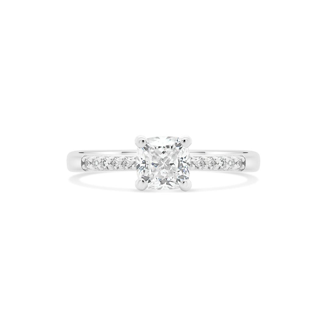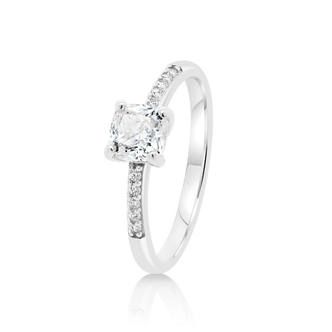Inel de logodnă din aur alb de 14K cu pietre cubic zirconia.