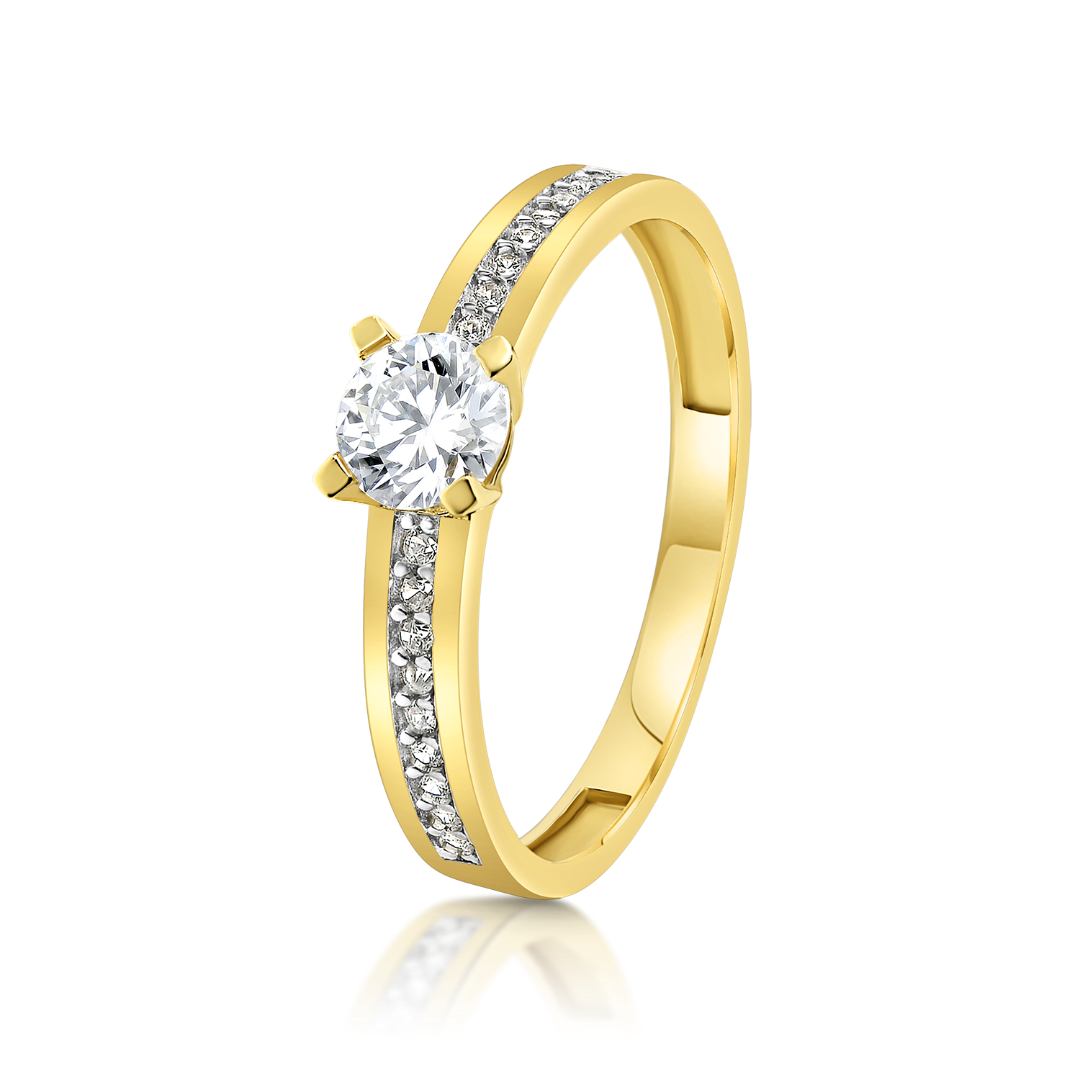 Inel de logodnă din aur galben de 14K cu pietre Cubic Zirconia albe.