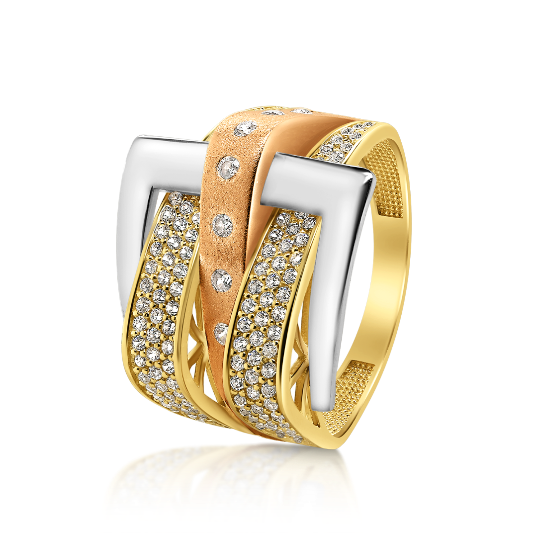 Inel din aur galben de 14K cu pietre Cubic Zirconia albe.