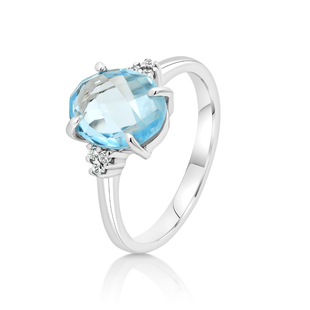Inel din aur alb de 14K cu pietre cubic zirconia.