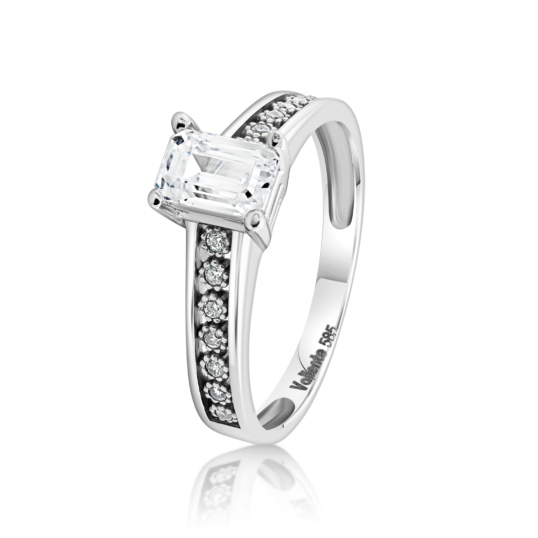 Inel din aur alb de 14K cu pietre Cubic Zirconia.