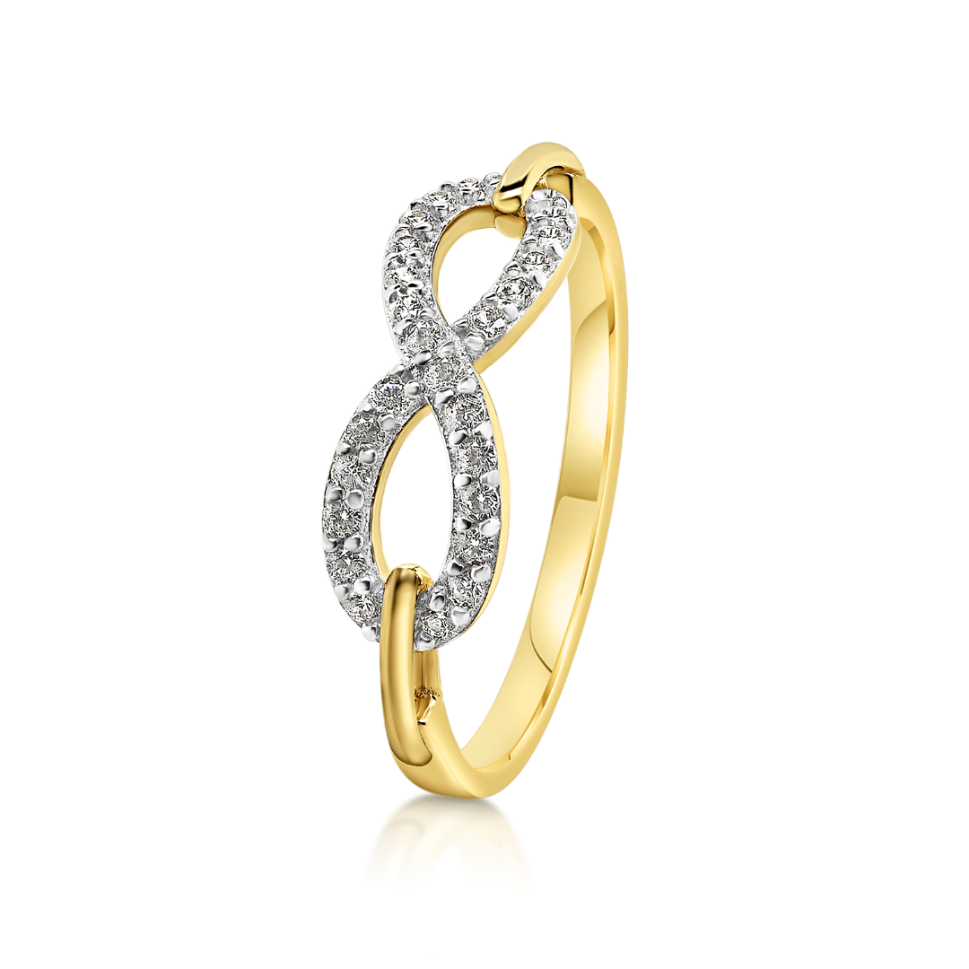 Inel din aur galben de 14K cu pietre Cubic Zirconia albe și element infinit.