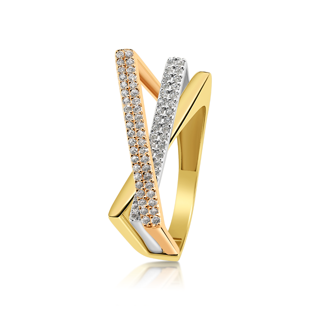 Inel din aur galben de 14K, cu elemente din aur roz și alb.
