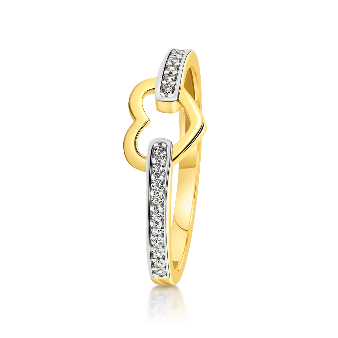 Inel din aur galben de 14K, cu rodiu alb și pietre Cubic Zirconia.