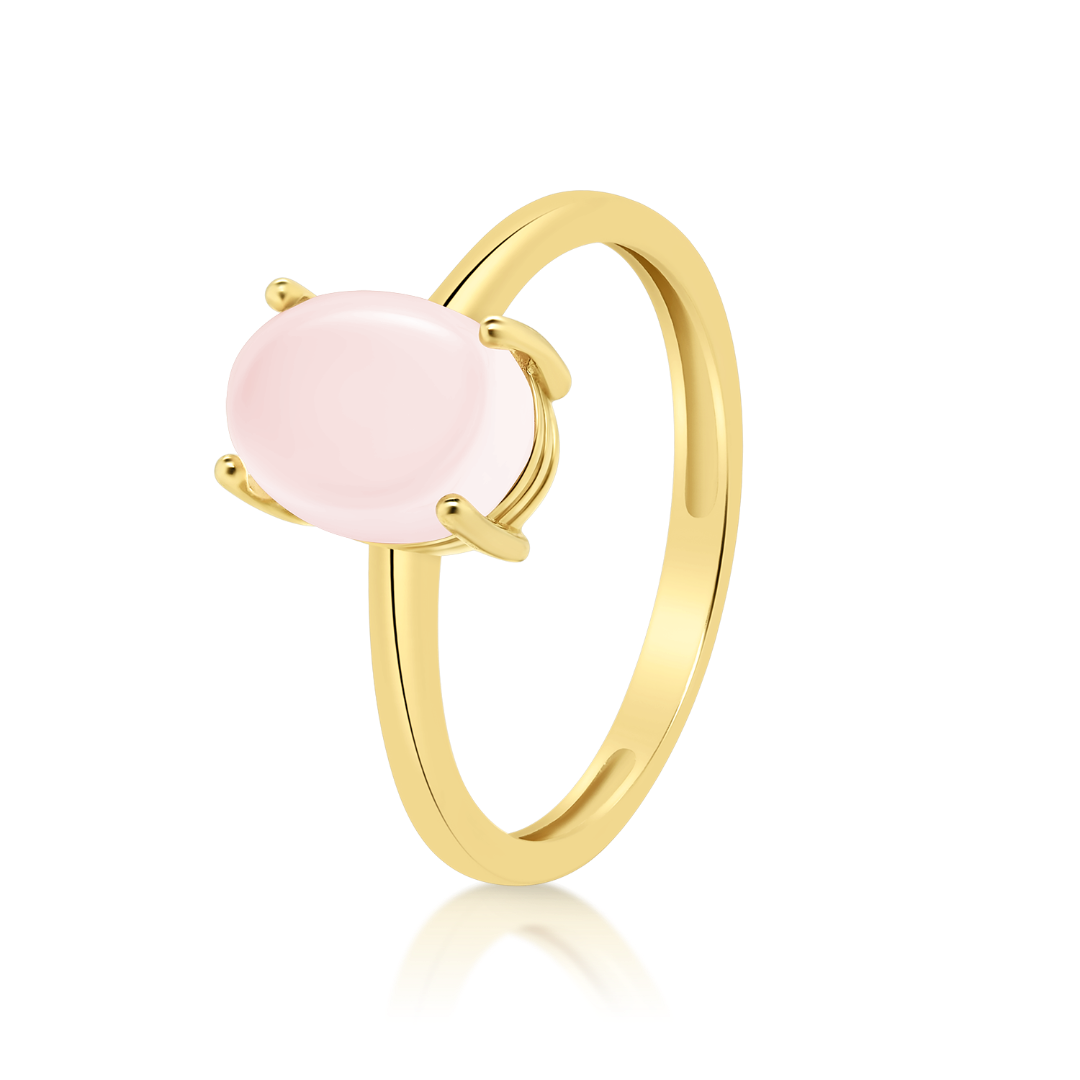 Inel din aur galben de 14K, cu piatră Cuarț roz Milky.