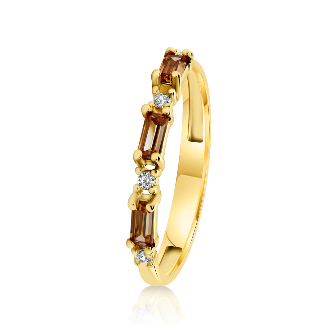 Inel din aur galben de 14K cu pietre Cubic Zirconia.