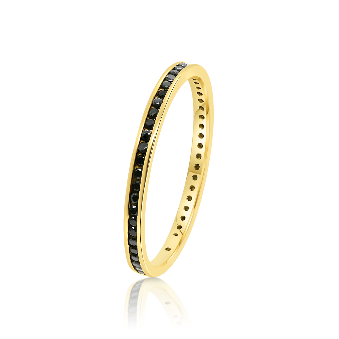 Inel din aur galben de 14K cu pietre cubic zirconia negre.
