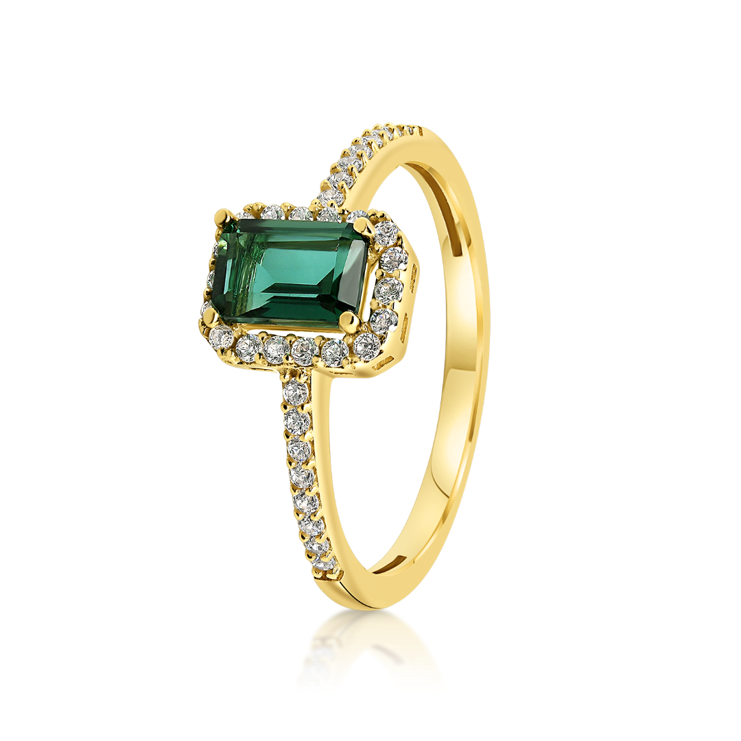 Inel din aur galben de 14K, cu pietre Cubic Zirconia albe și verzi.