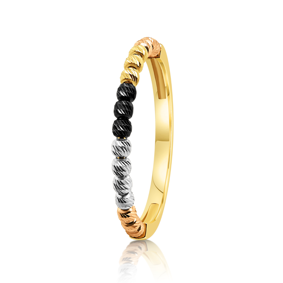Inel din aur galben de 14K, cu biluțe fațetate din aur roz și alb.