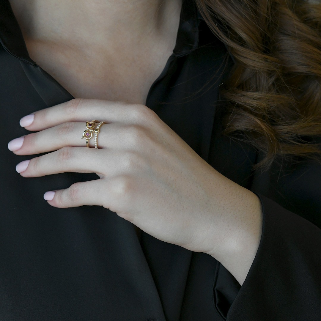 Inel din aur galben de 14K cu pietre cubic zirconia.