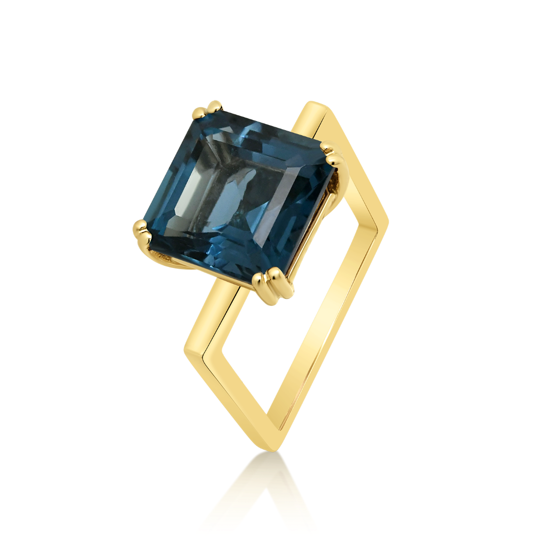 Inel din aur galben de 14K cu London Blue Topaz
