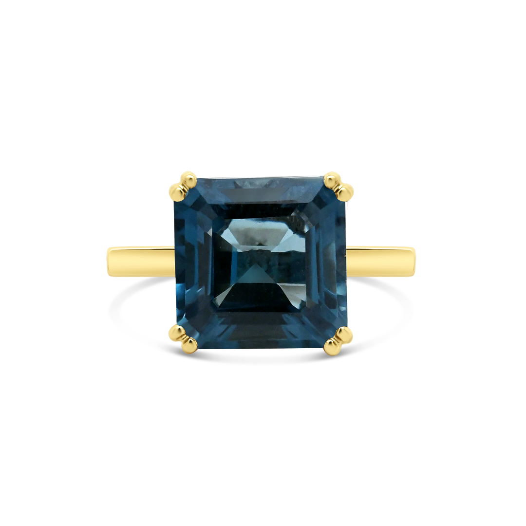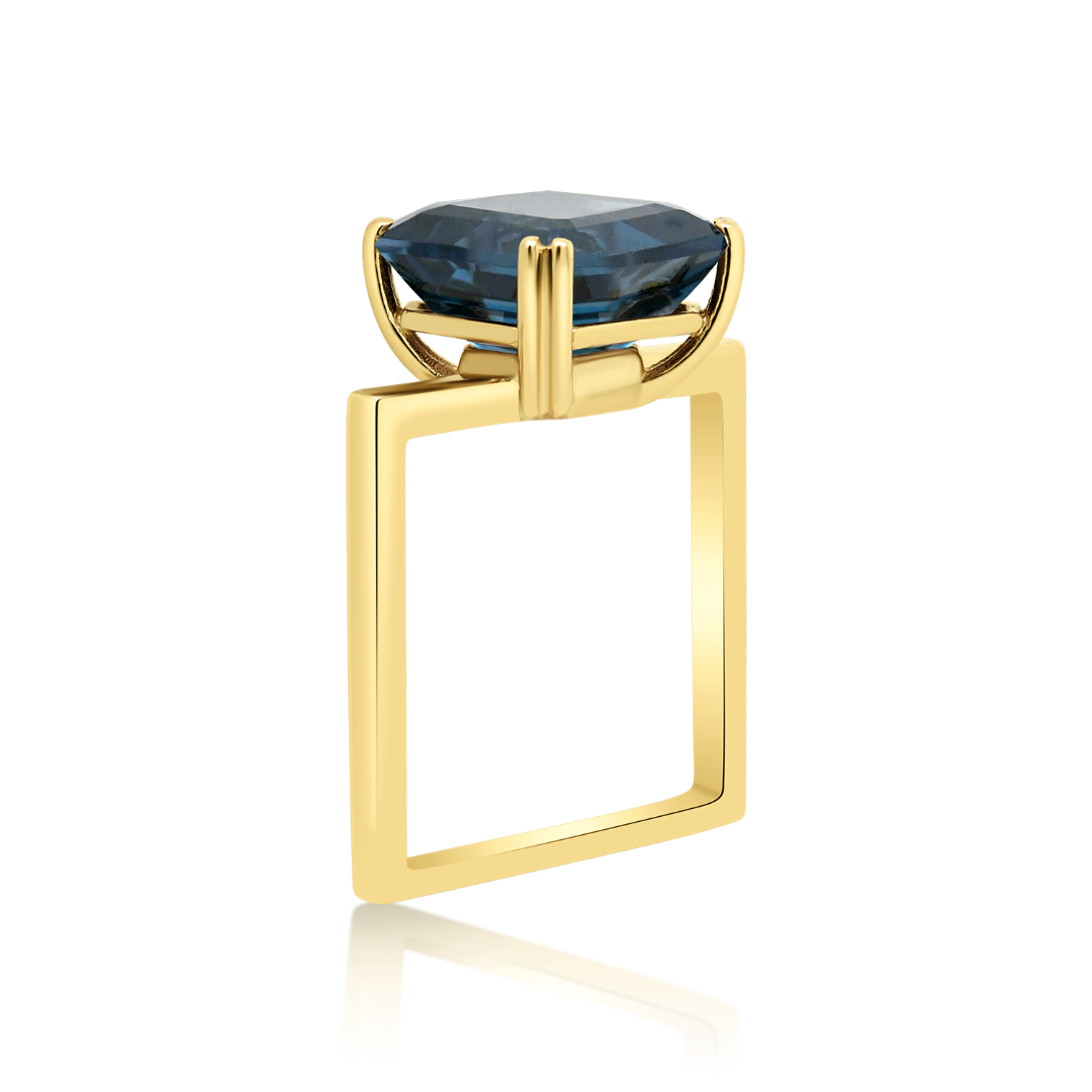 Inel din aur galben de 14K cu London Blue Topaz.