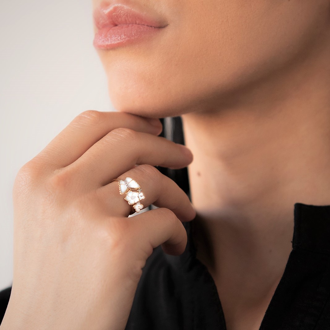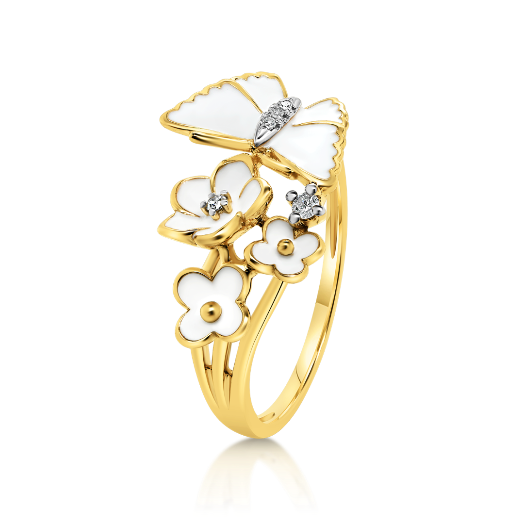 Inel din aur galben de 18K, cu Diamante și Email alb
