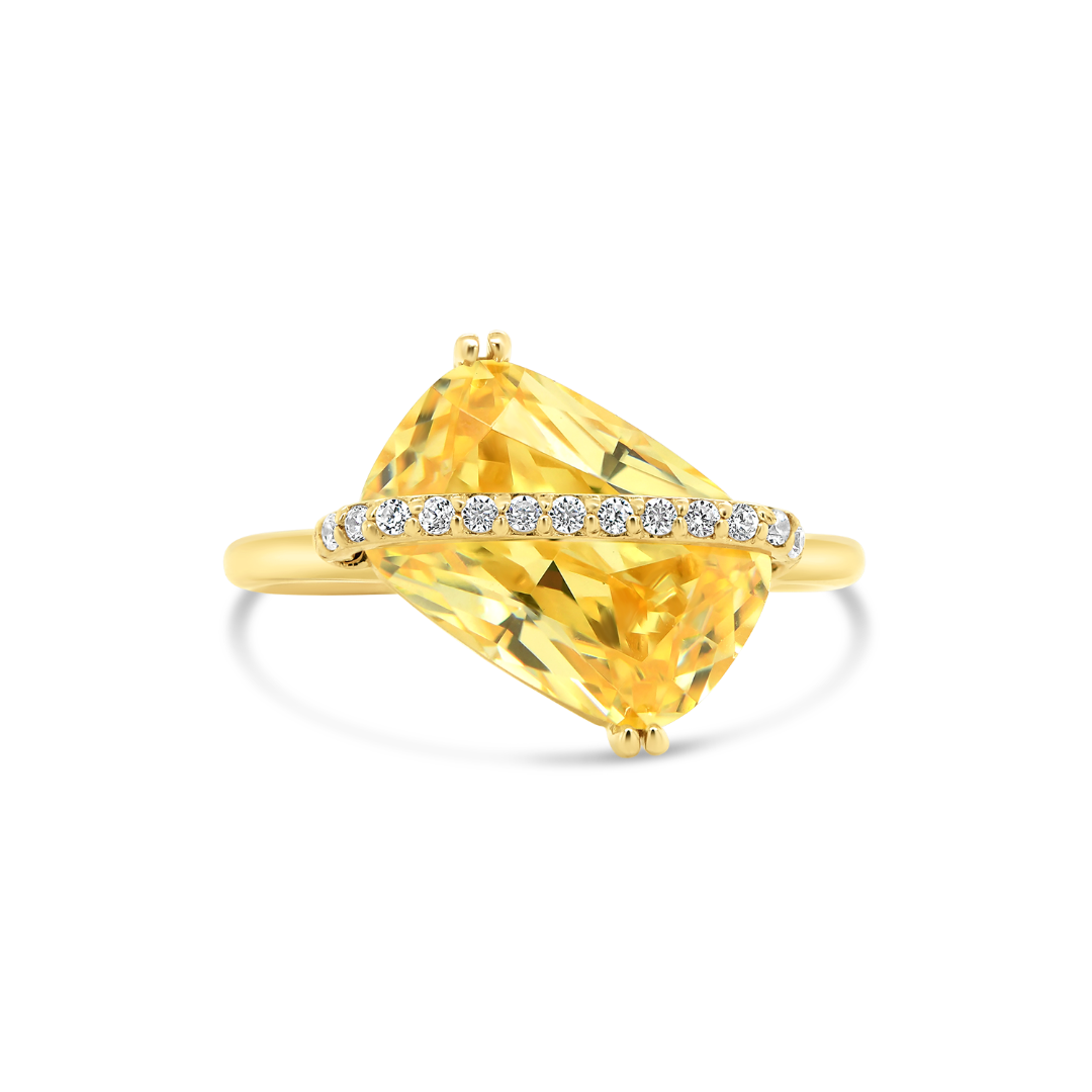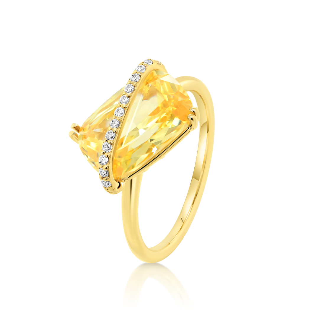 Inel din aur galben de 14K cu pietre Cubic Zirconia.