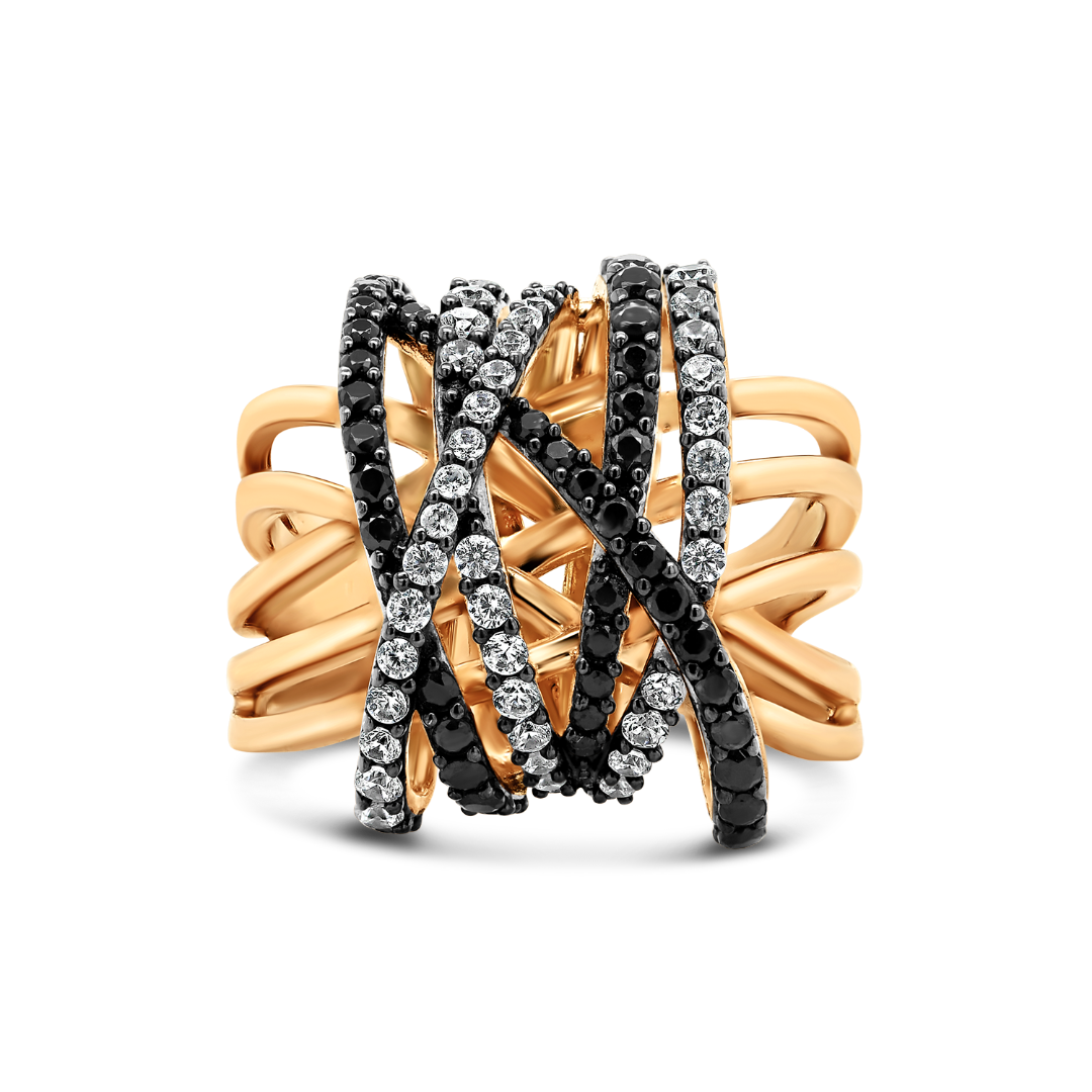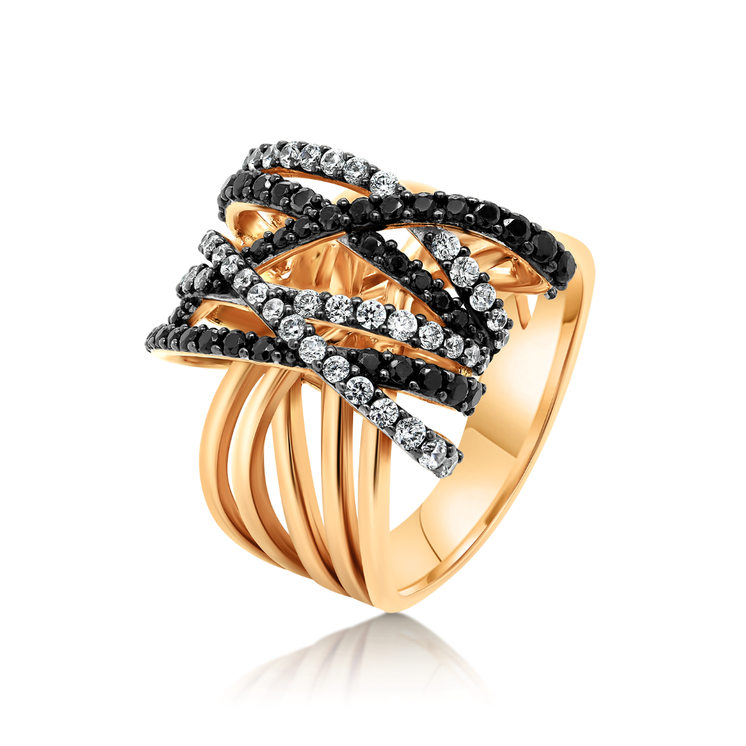 Inel din aur roz de 14K cu pietre cubic zirconia.