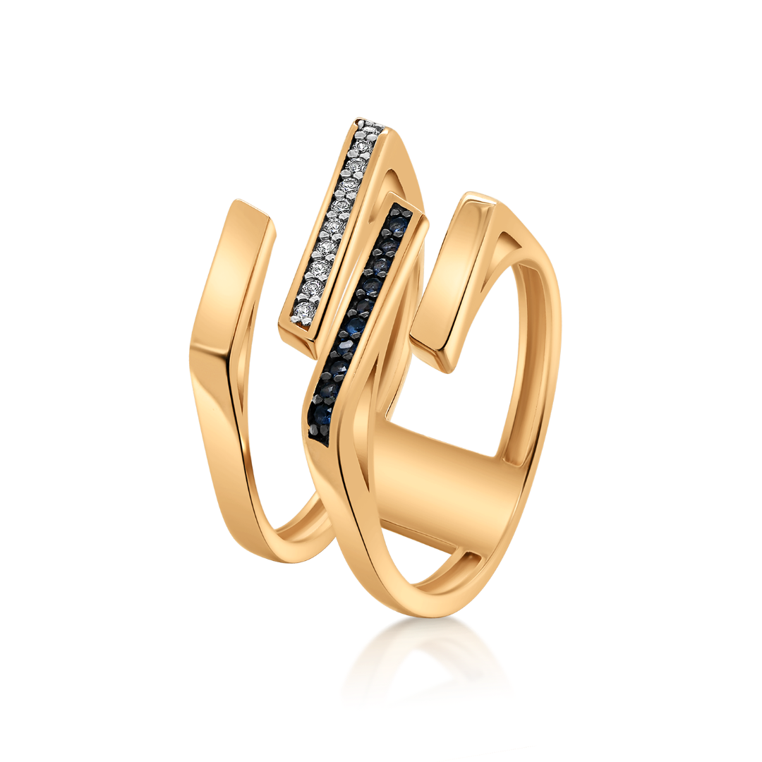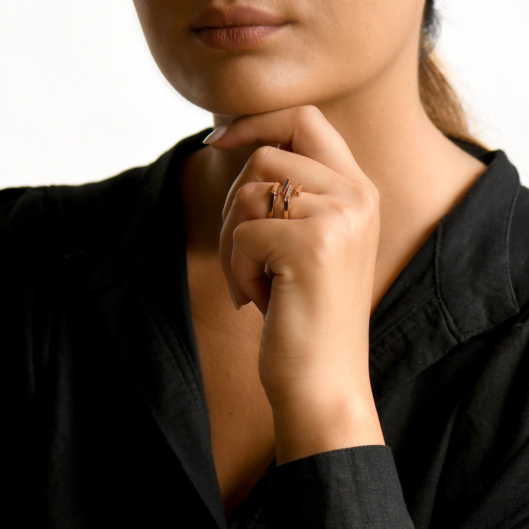 Inel din aur roz de 14K, cu Rodiu negru și pietre cubic zirconia.
