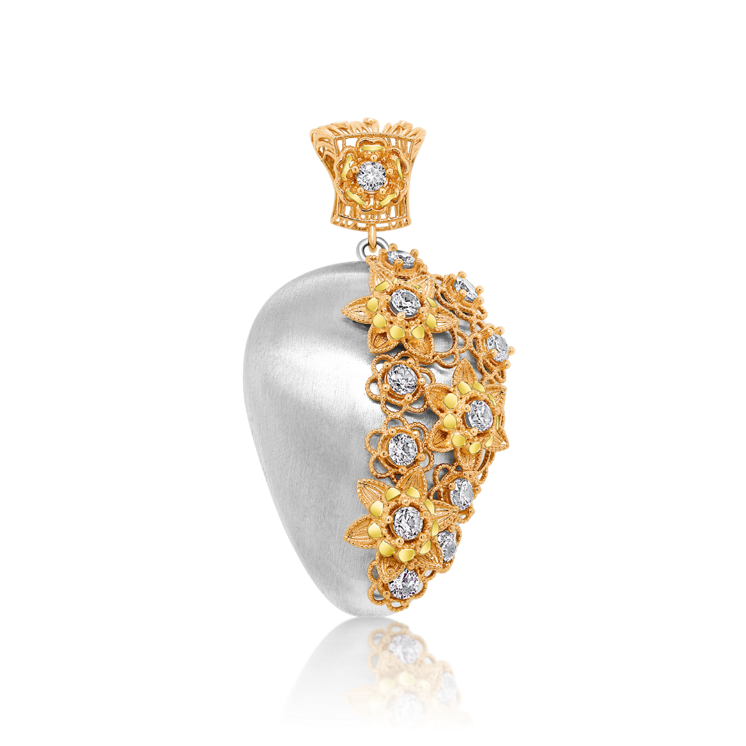 Pandantiv din aur de 14K, cu Filigran și pietre Cubic Zirconia albe.