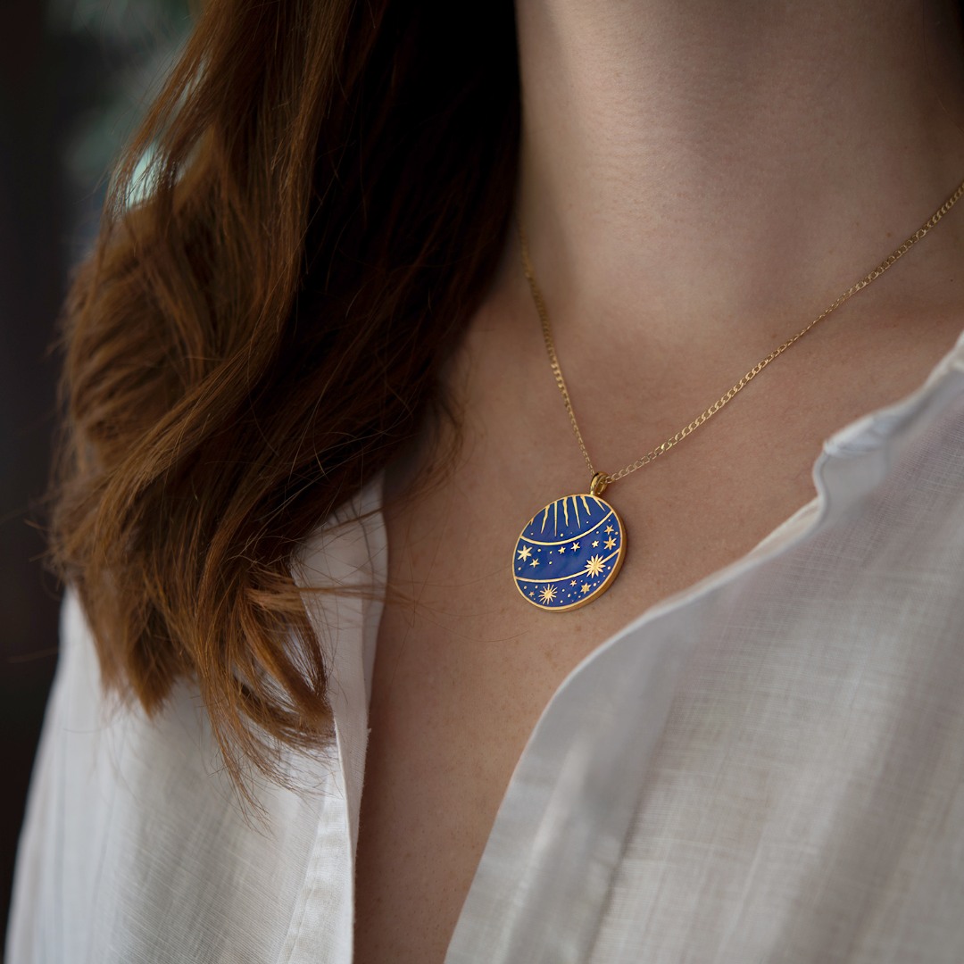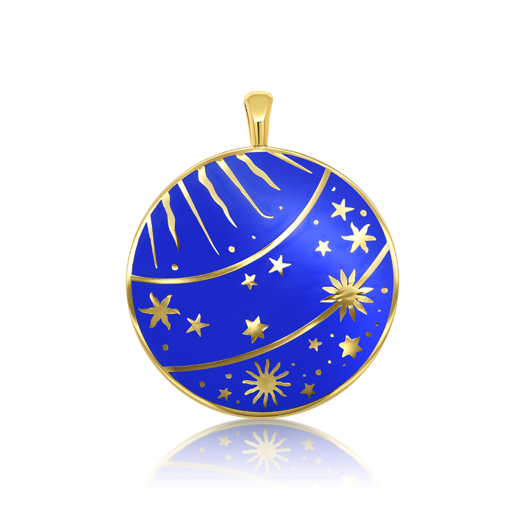 Pandantiv Cosmos din aur galben de 14K cu Ceramică.