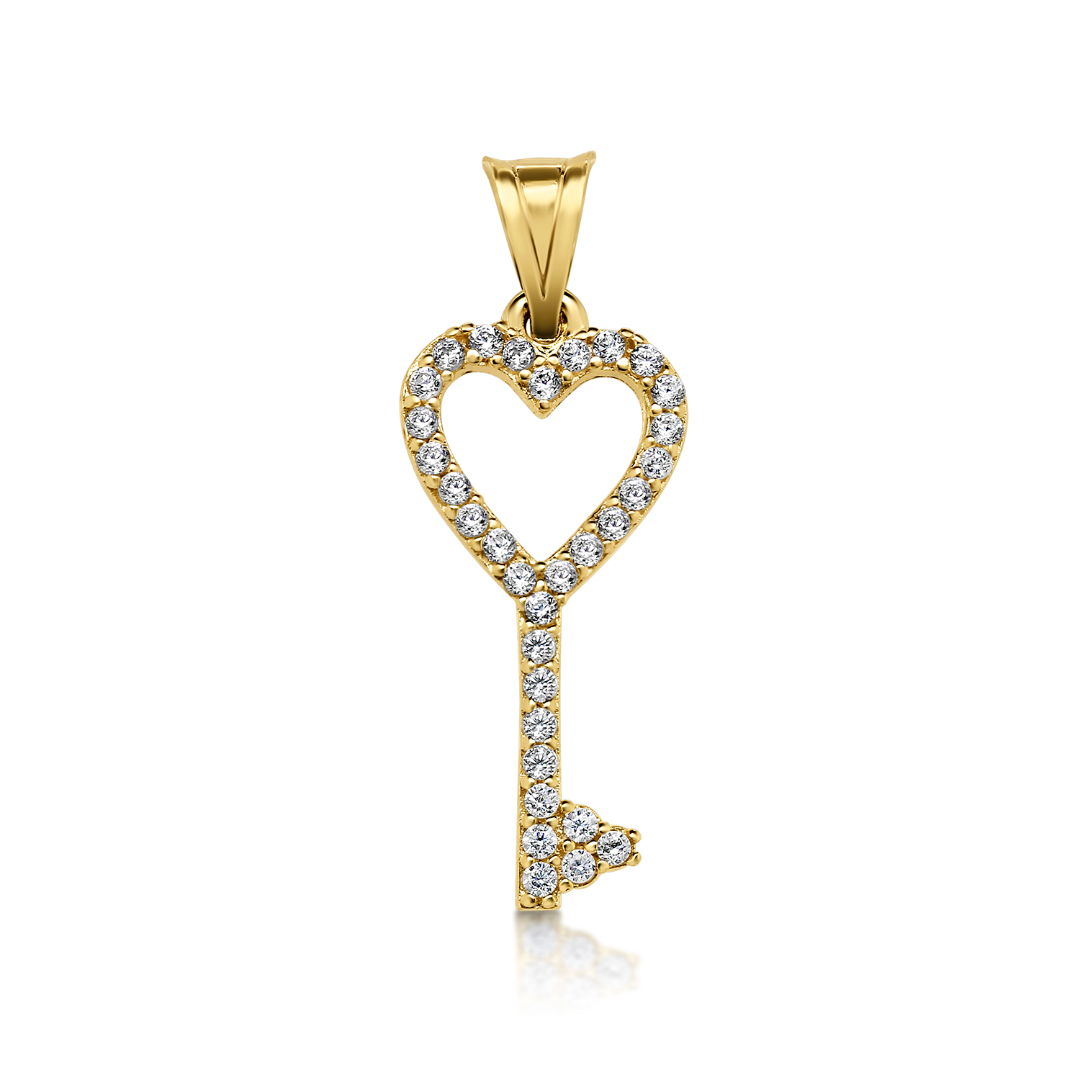 Pandantiv cheie din aur galben de 14K cu pietre Cubic Zirconia albe.