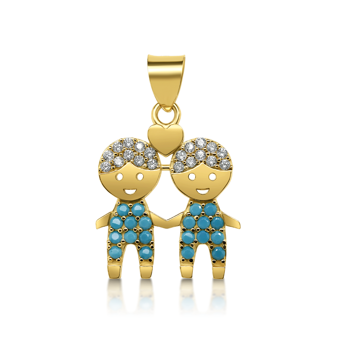 Pandantiv din aur galben de 14K, cu turcoaze și pietre Cubic Zirconia albe.