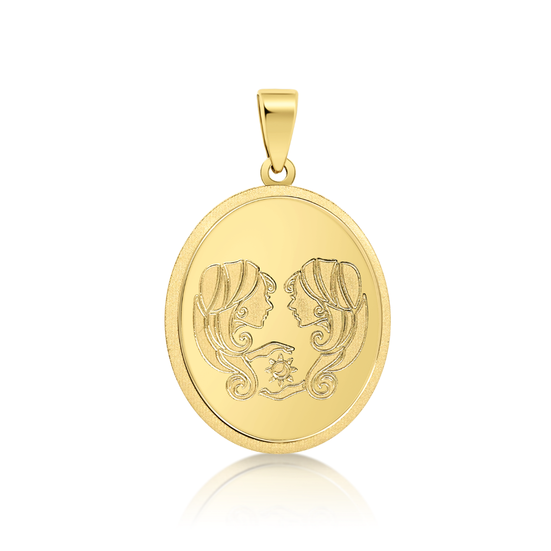 Pandantiv din aur galben de 14K cu semnul zodiacal GEMENI.