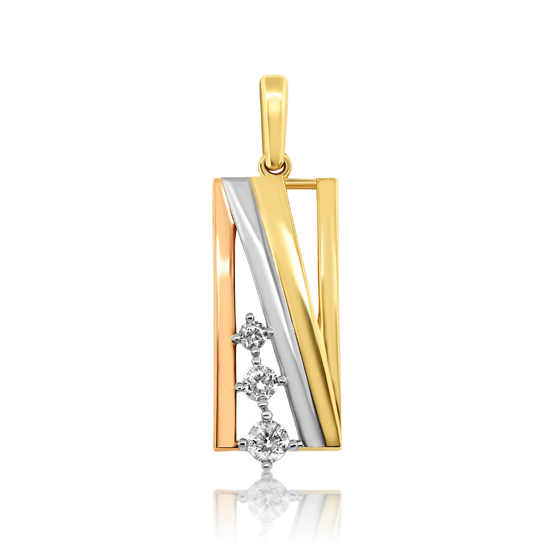 Pandantiv din aur galben de 14K cu pietre cubic zirconia și elemente din aur alb și roz.
