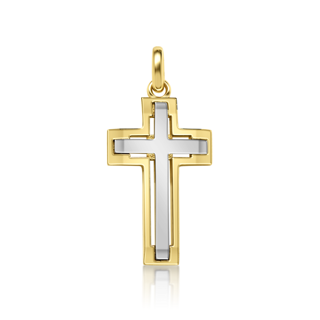 Pandantiv cruce din aur galben de 14K cu element din aur alb.