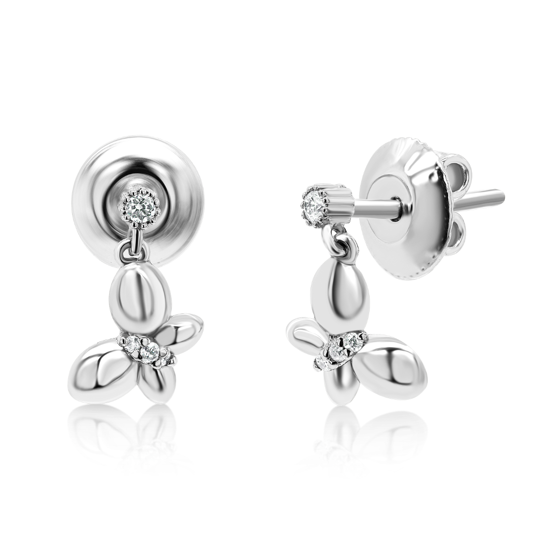Cercei din aur alb de 18K, cu elemente în formă de fluture și Diamante naturale de 0.05ct.