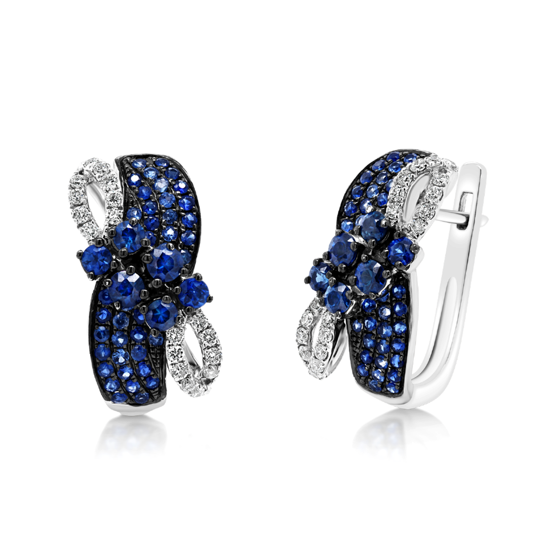 Cercei din aur alb de 18K cu Diamante naturale Round Brilliant de 0.25ct şi 96 Safire albastre de 1.11ct.