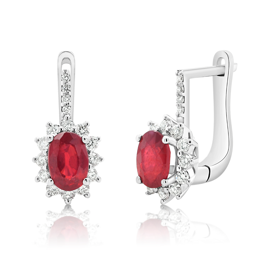 Cercei din aur alb de 14K  încrustați cu Diamante naturale Round Brilliant de 0.32ct. si Rubine de 1.36ct.