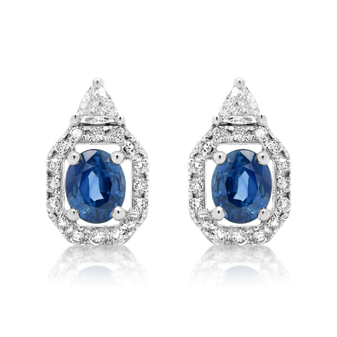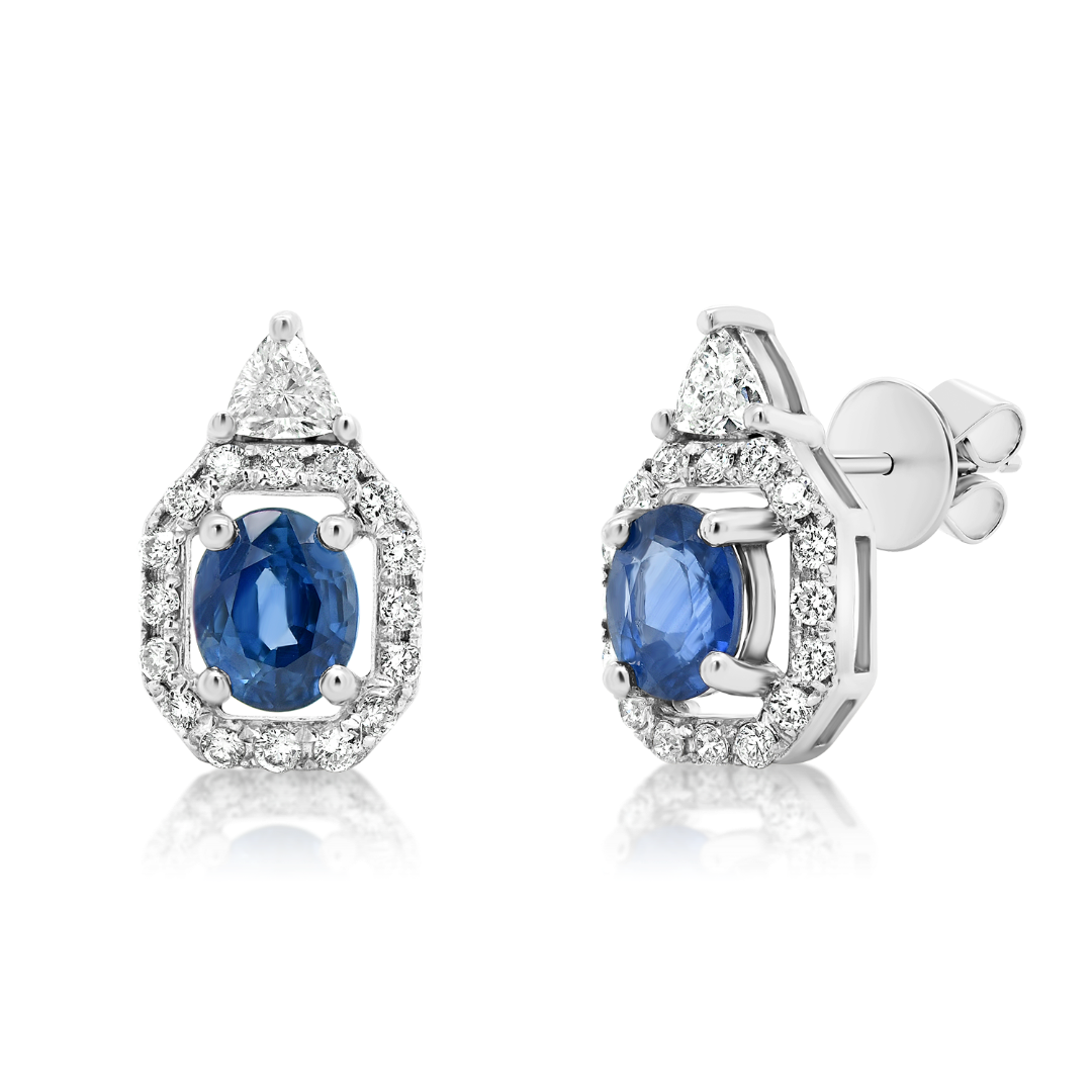 Cercei din aur alb de 18K cu 34 de Diamante naturale Round Brilliant de 0.42ct și două Safire albastre de 1.22ct.