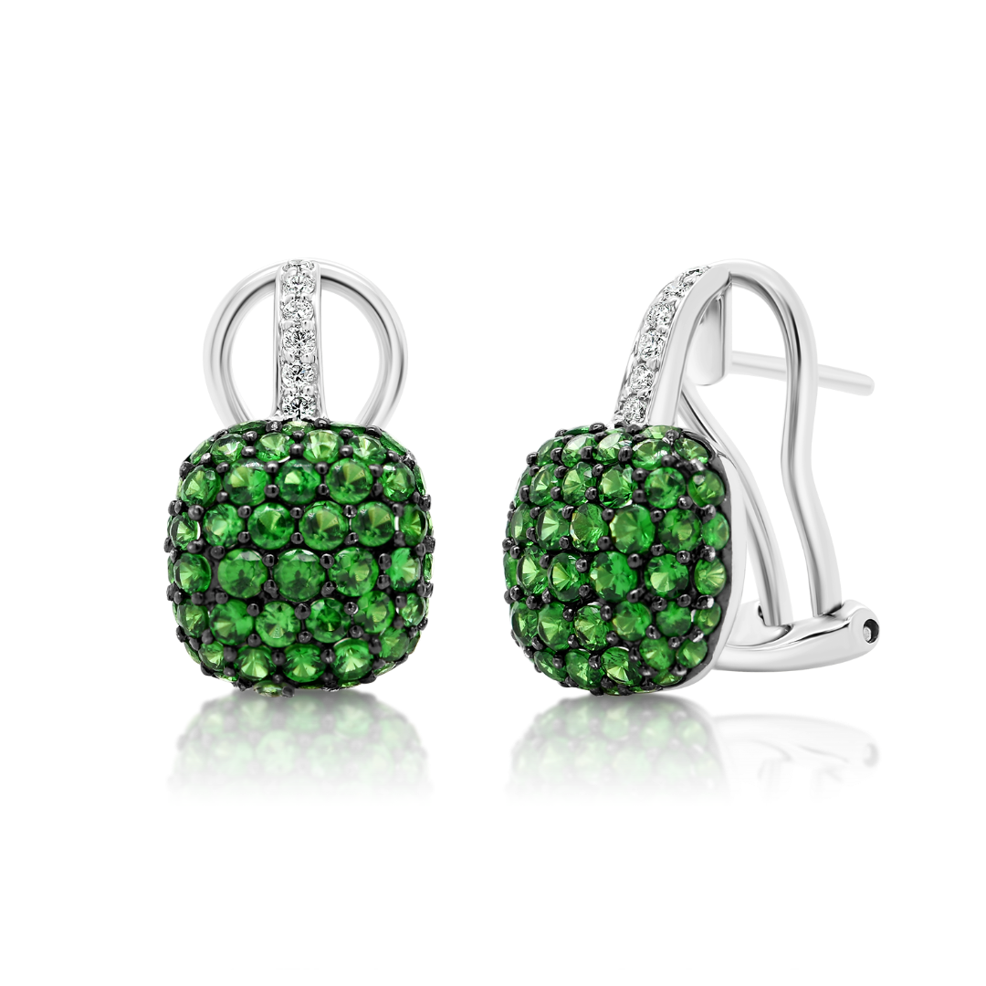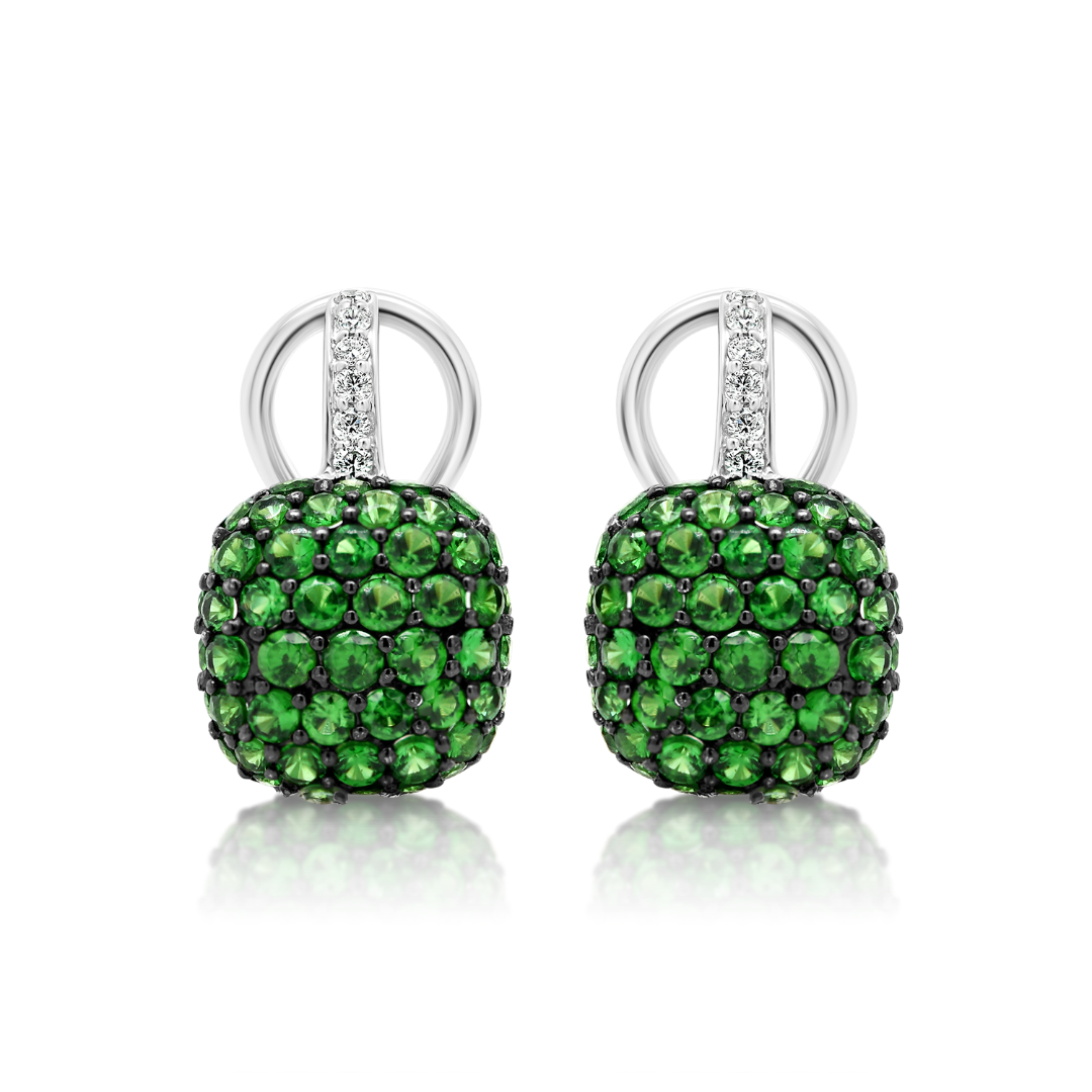 Cercei din aur alb de 18K cu Granate de 2.03ct și Diamante incolore Round Brilliant de 0.09ct.