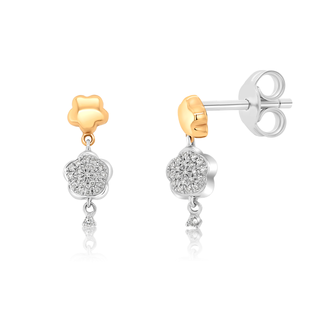 Cercei din aur alb de 18K cu Diamante naturale și element floare din aur roz.