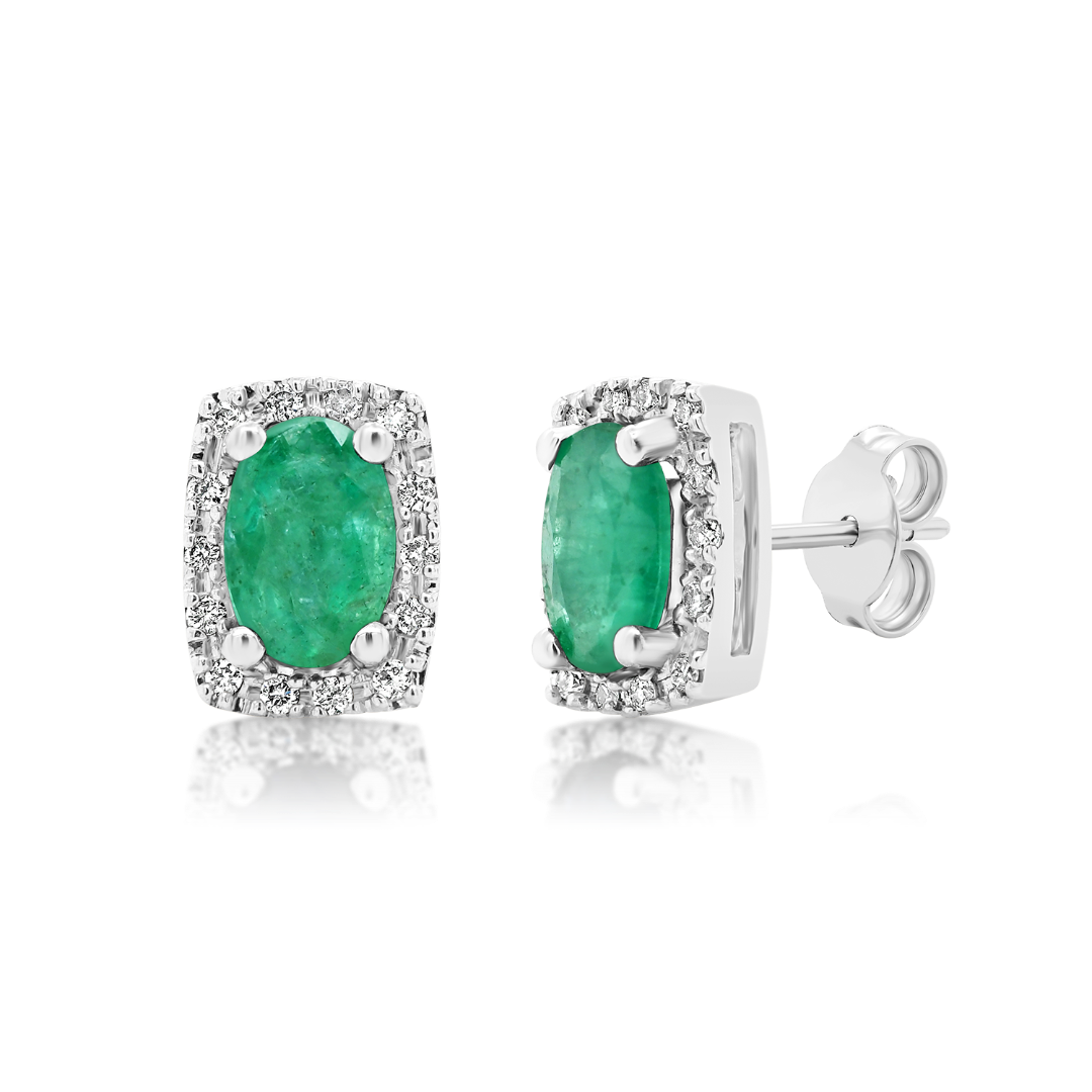 Cercei din aur alb de 18K cu Smaralde și Diamante naturale