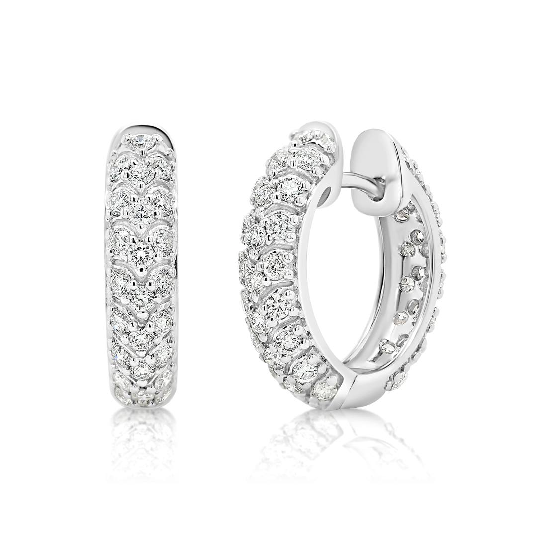 Cercei din aur alb de 18K, încrustați cu 96 de Diamante Round Brilliant de 0.936ct.