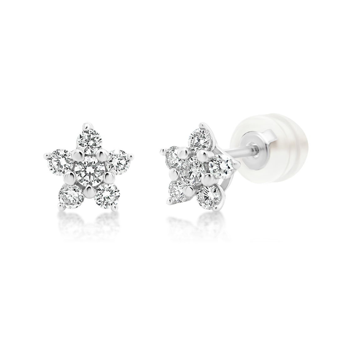 Cercei din aur alb de 18K cu Diamante naturale Round Brilliant