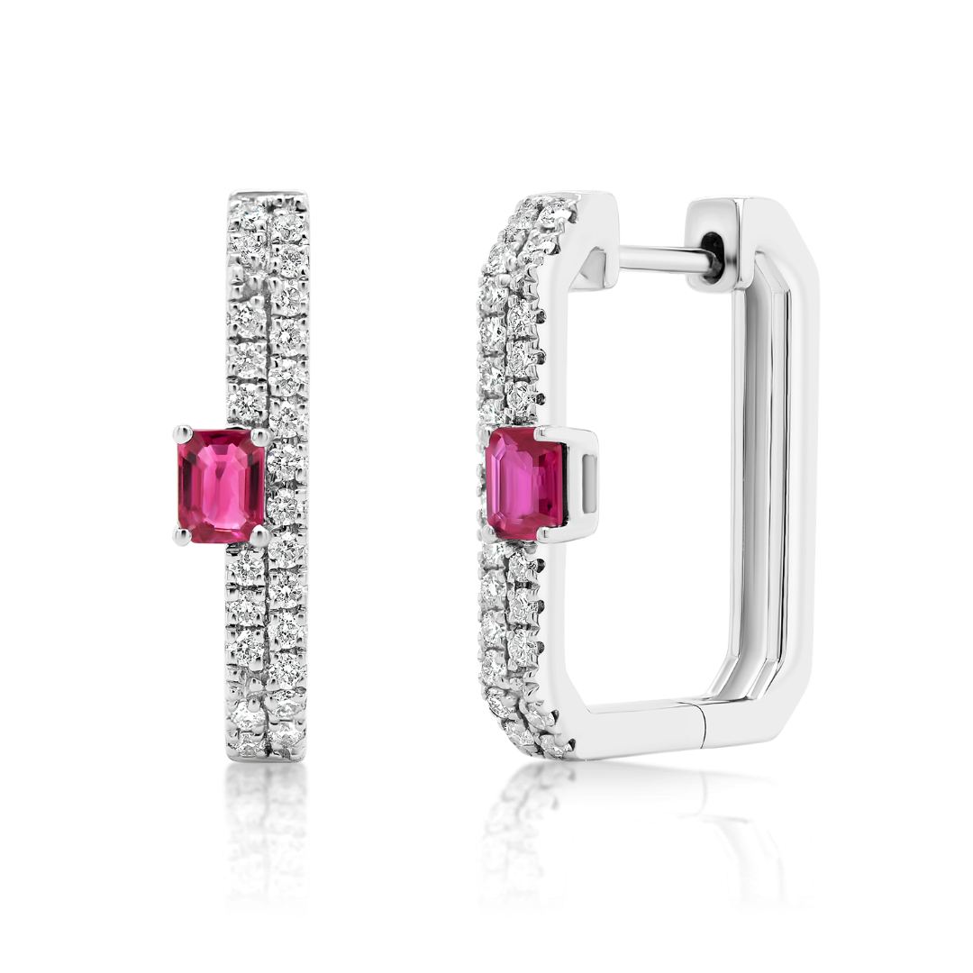 Cercei din aur alb de 18K cu Rubine și Diamante naturale