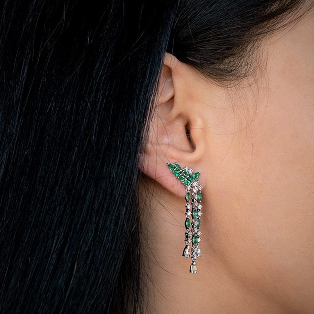 Cercei din aur alb de 18K cu Smaralde și Diamante naturale