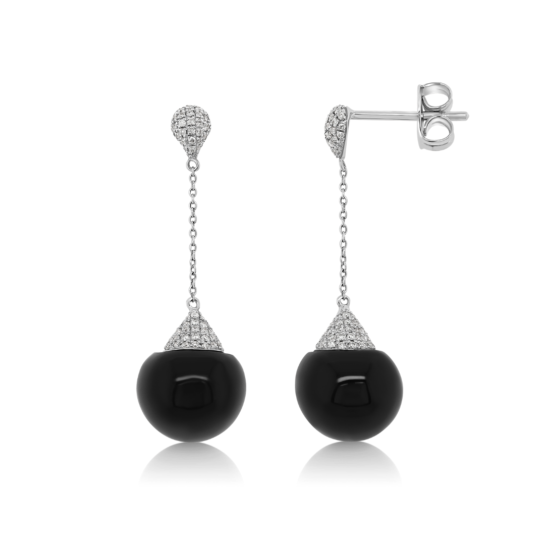 Cercei din aur alb de 18K cu Onix și Diamante naturale.