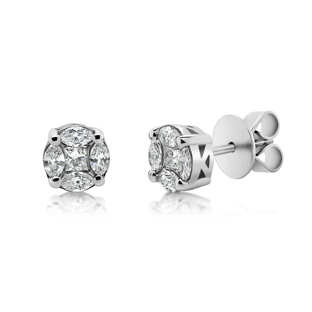 Cercei din aur alb de 18K încrustați cu 8 Diamante Marquise de 0.46ct. și 2 Diamante Princess de 0.14ct.