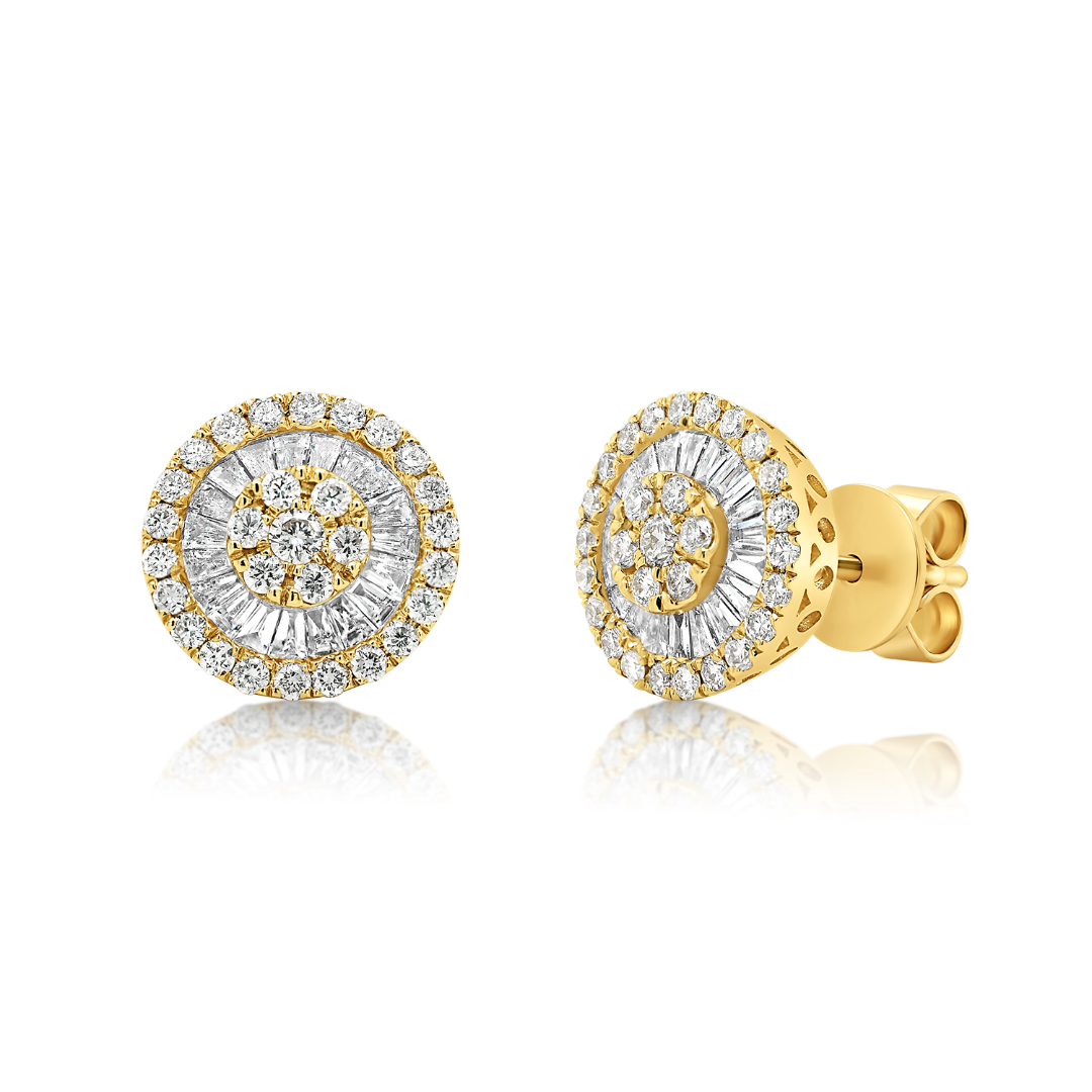 Cercei din aur galben de 18K, încrustați cu Diamante naturale de 0.76ct.