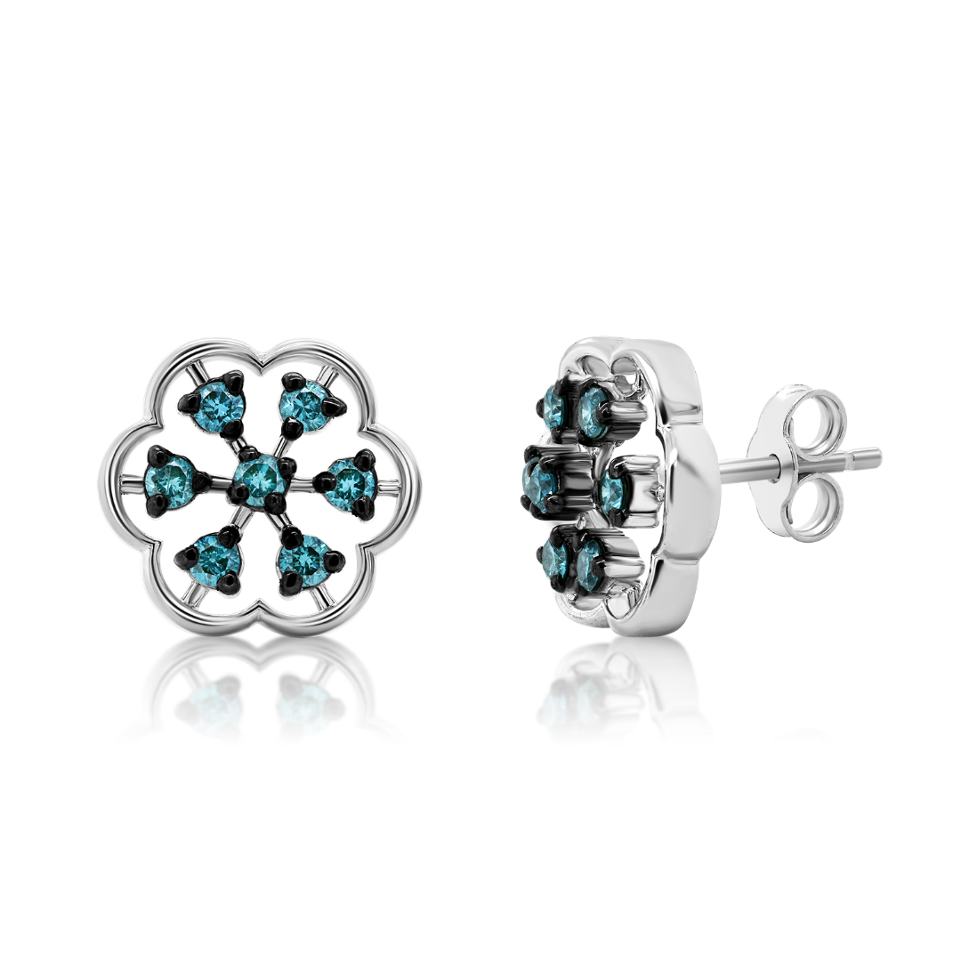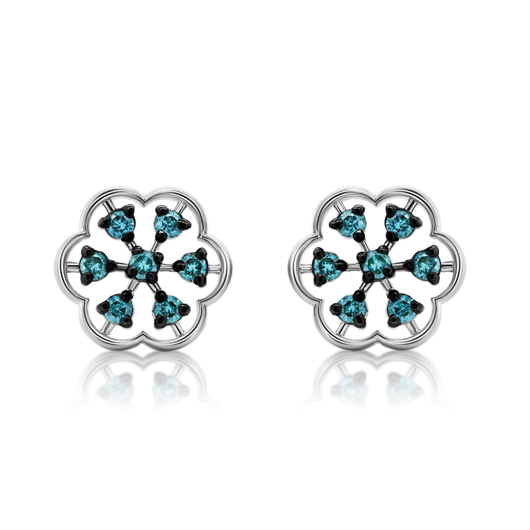 Cercei din aur alb de 18K cu Diamante naturale Ice Blue de 0.28ct.