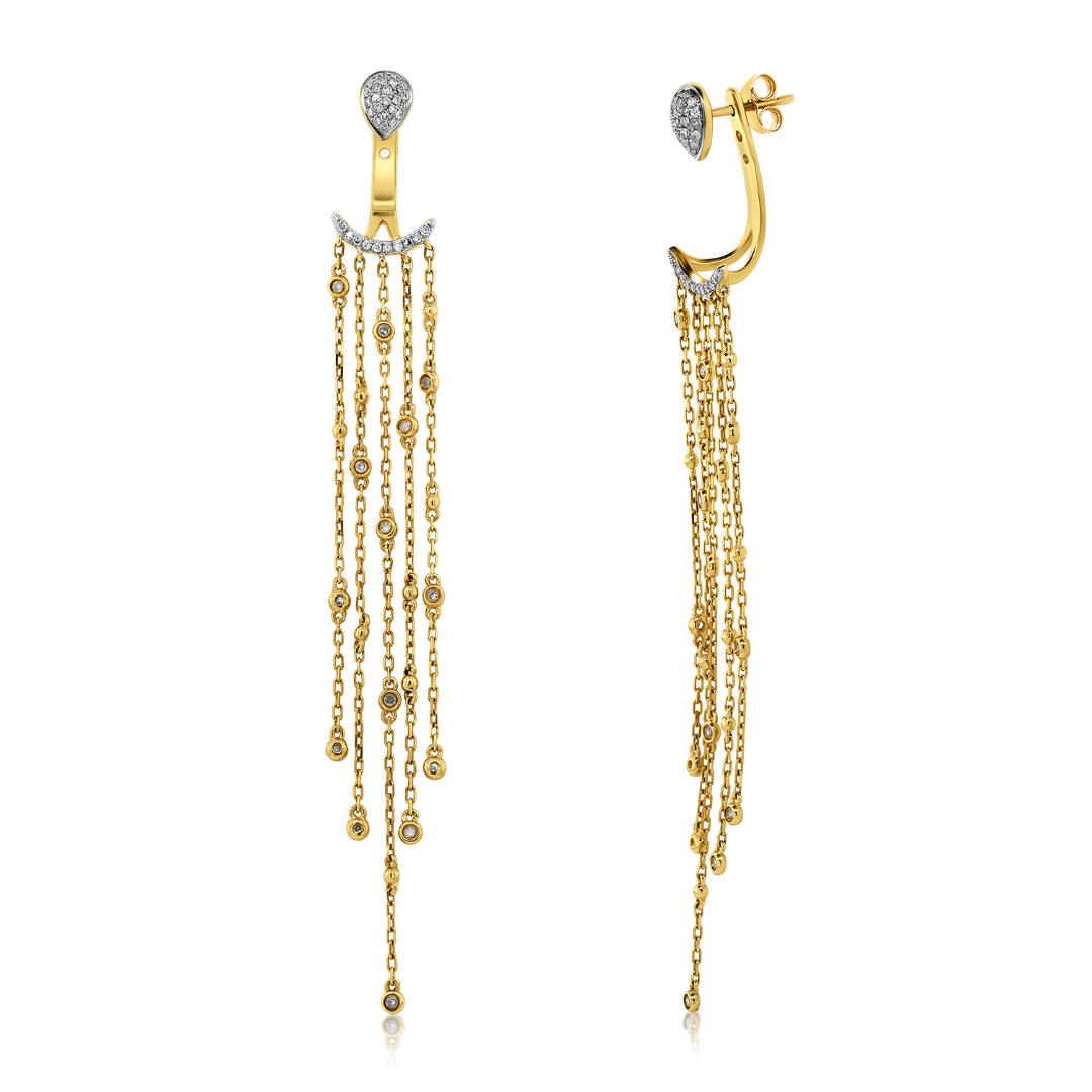 Cercei cu două opțiuni de purtare din aur galben de 14K, încrustați cu 98 de Diamante naturale cu o greutate totală de 0.36ct.