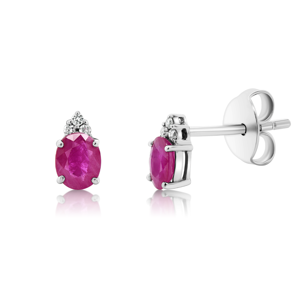 Cercei din aur alb de 18K, cu Diamante de 0.04ct. și Rubine de 0.08ct.