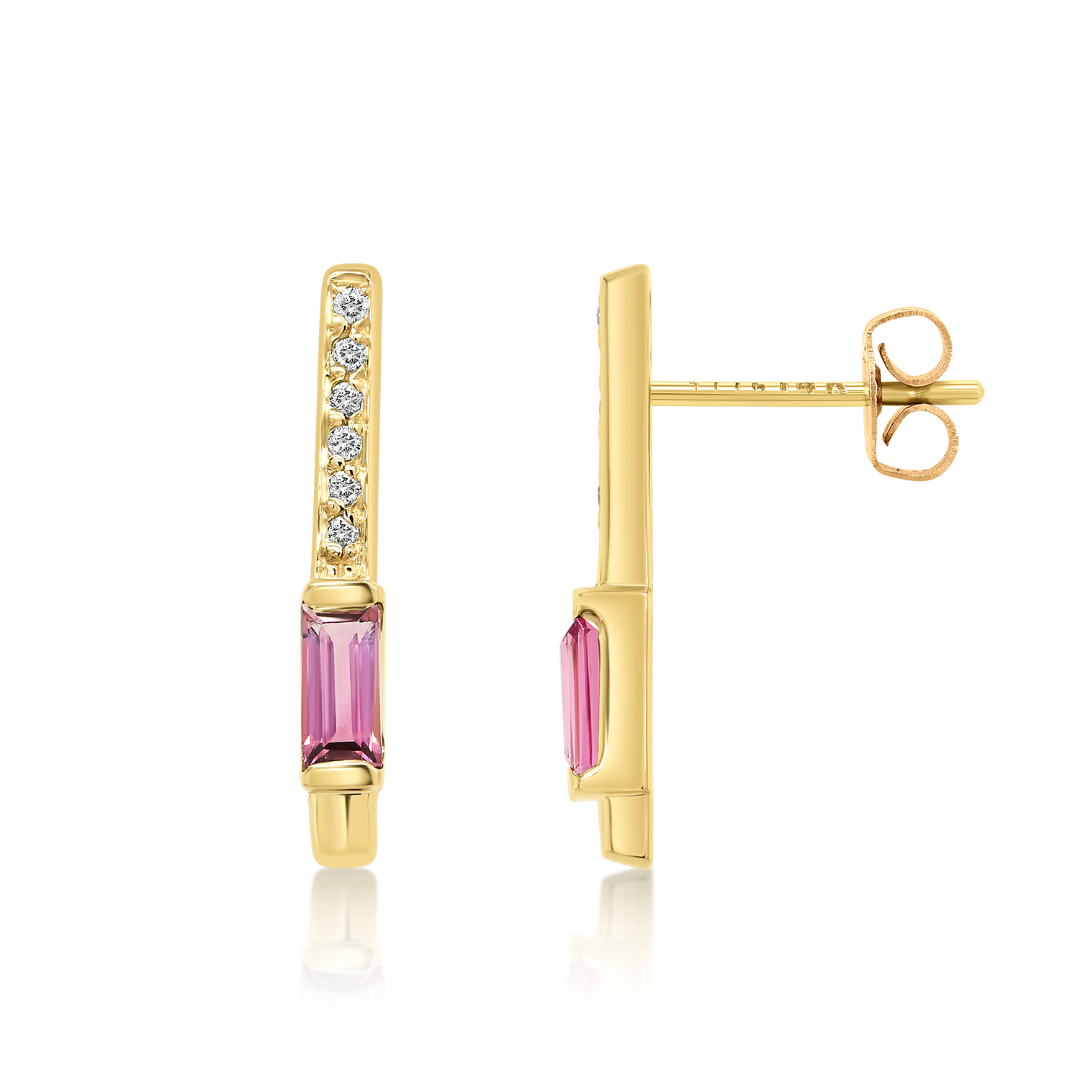 Cercei din aur galben de 14K cu Turmaline și Diamante naturale.