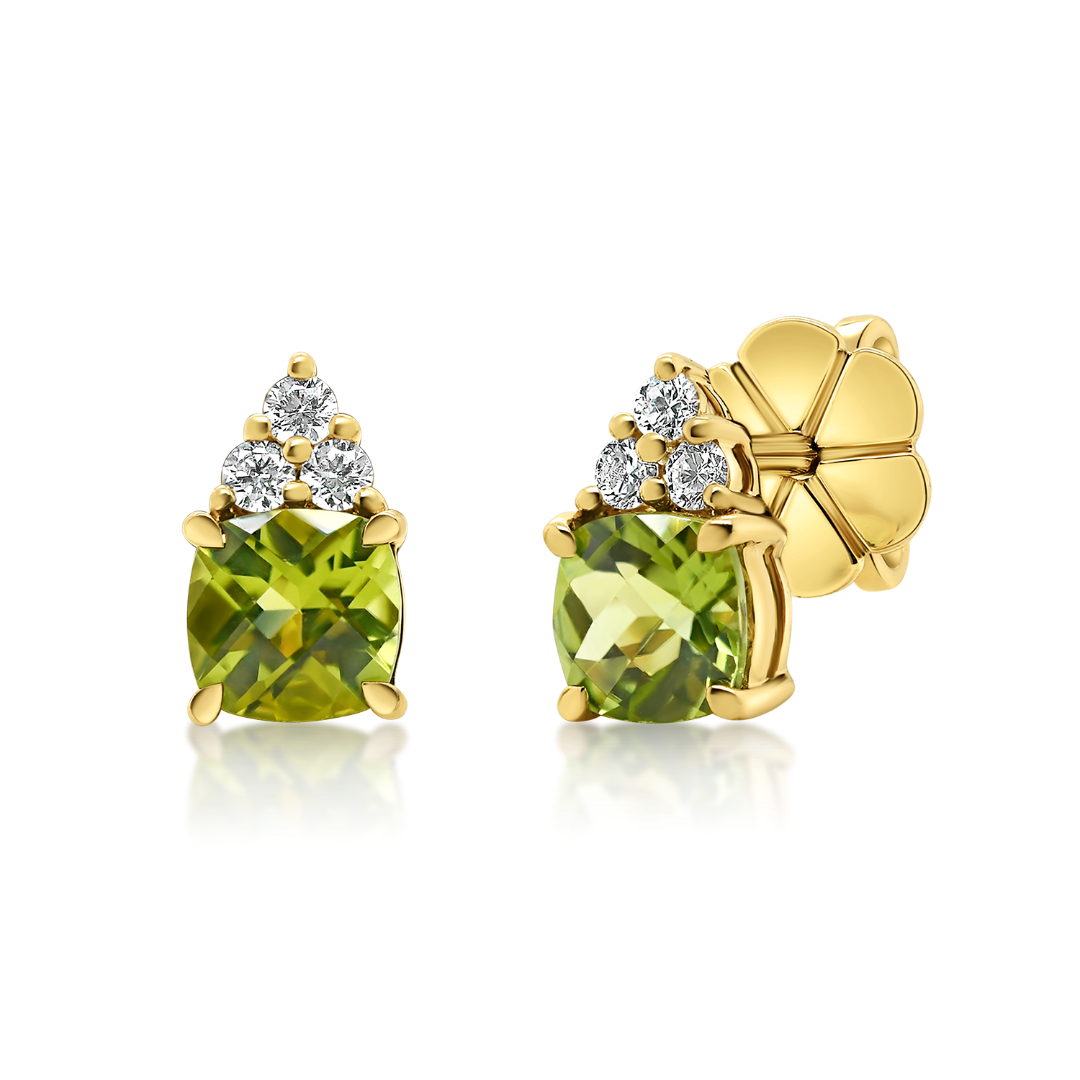 Cercei din aur galben de 18K cu Peridot și Diamante naturale