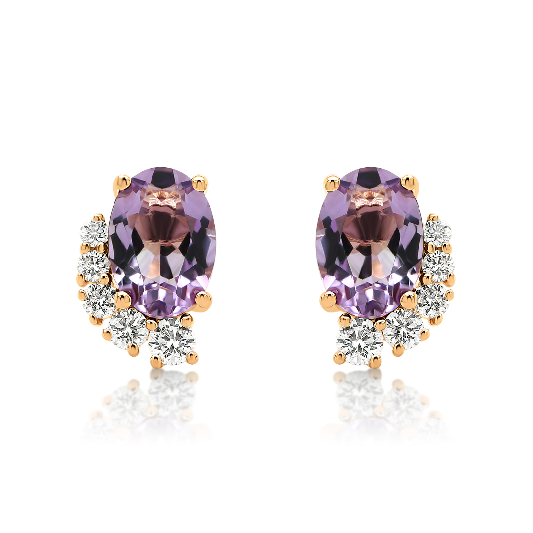Cercei din aur roz de 18K cu Ametiste și Diamante naturale