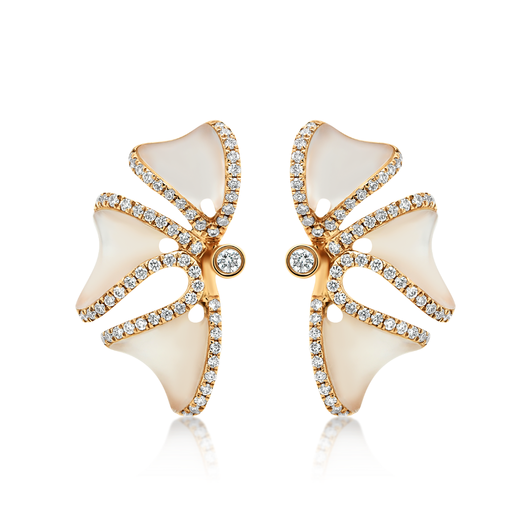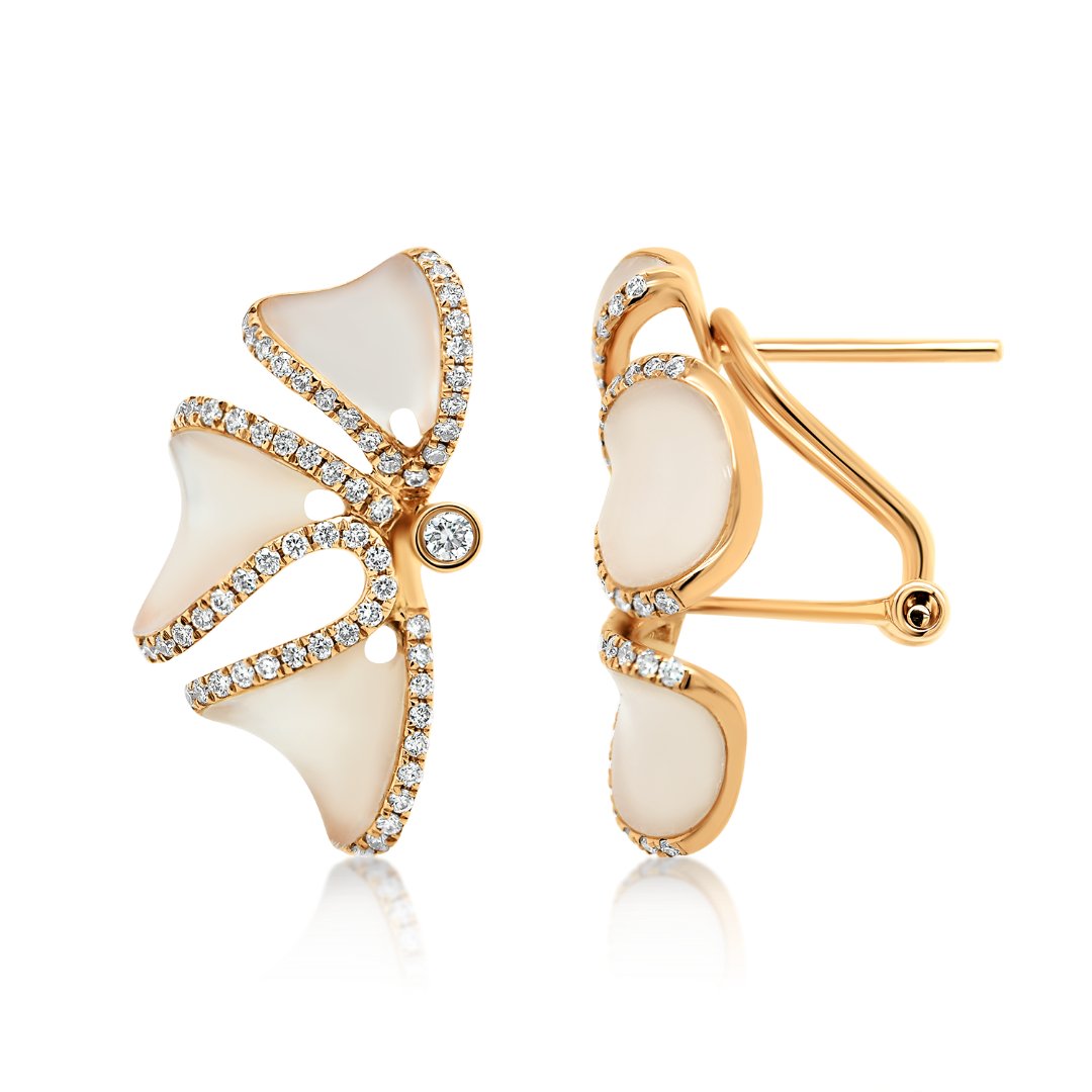 Cercei din aur roz de 18K cu Diamante naturale și Sidef