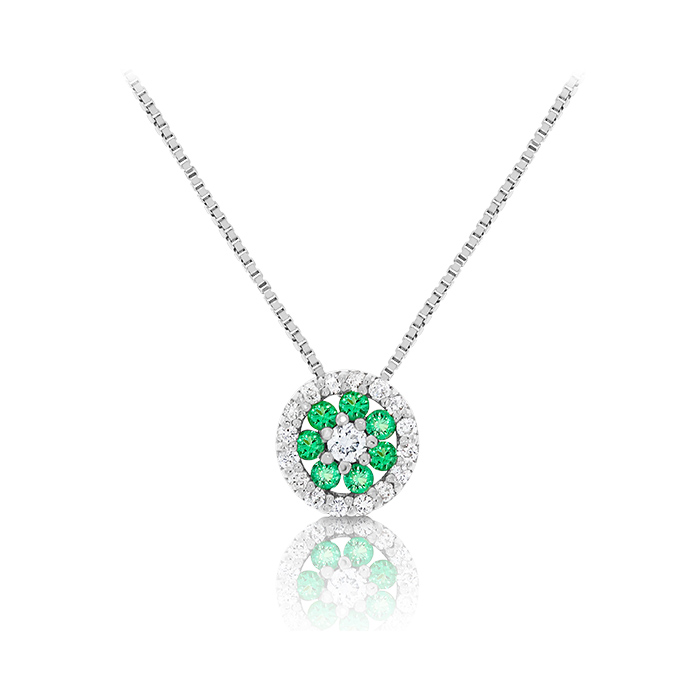 Colier din aur alb de 18K cu pandantiv încrustat cu Diamante de 0.11ct. și Smaralde de 0.09ct.