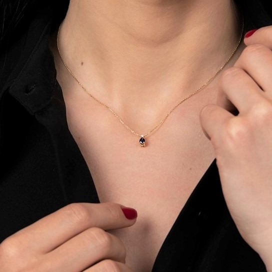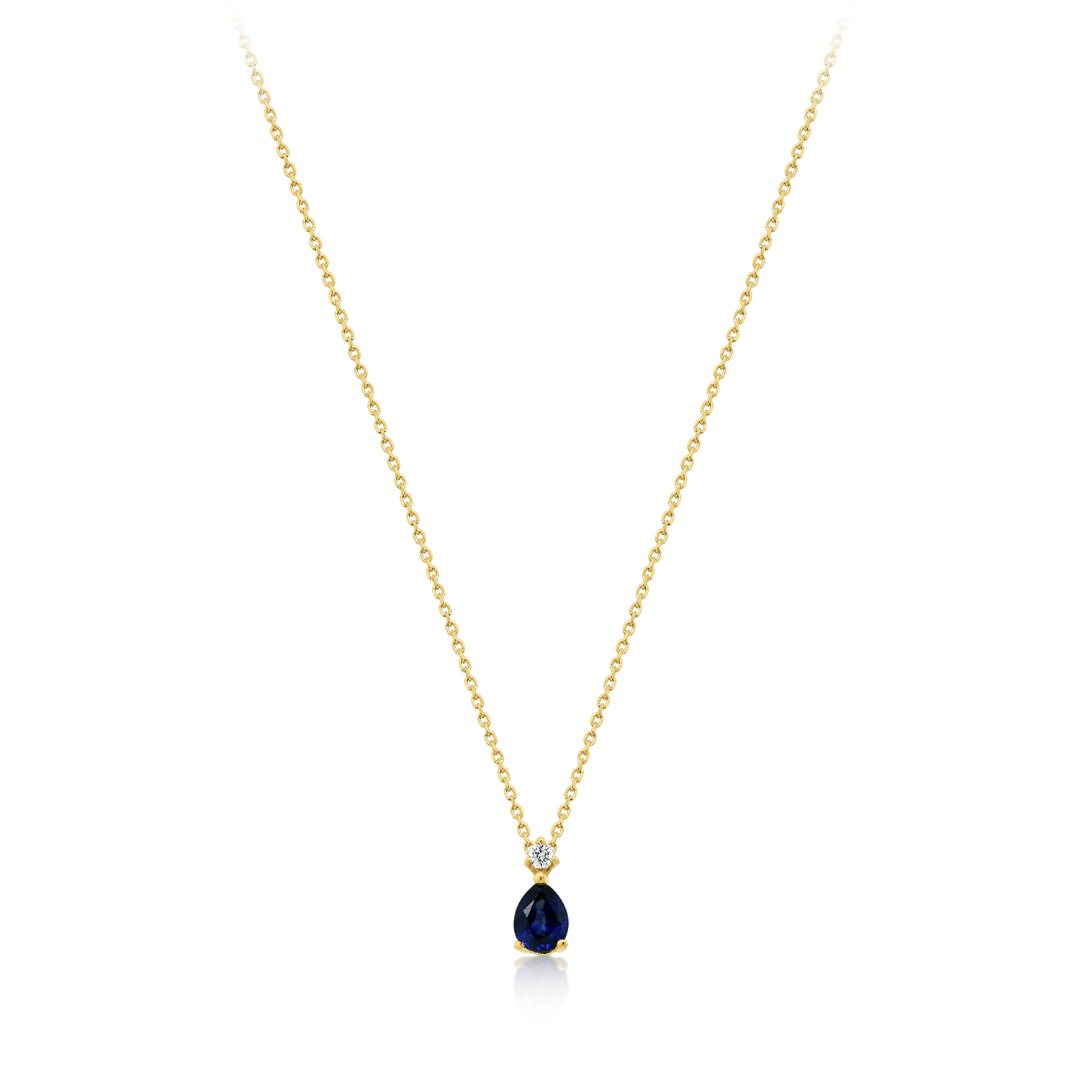 Colier din aur galben de 18K, cu pandantiv încrustat cu Safir și Diamant natural.